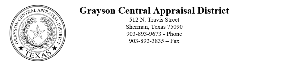 Notice: Grayson Central Appraisal District may require a payment for this request in accordance with Texas